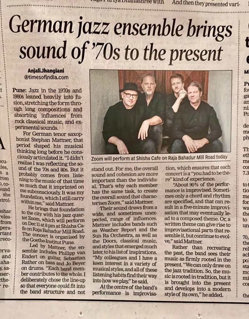 dem Jazz-Quartett „ZOOM“ durch mehrere Städte Indiens!