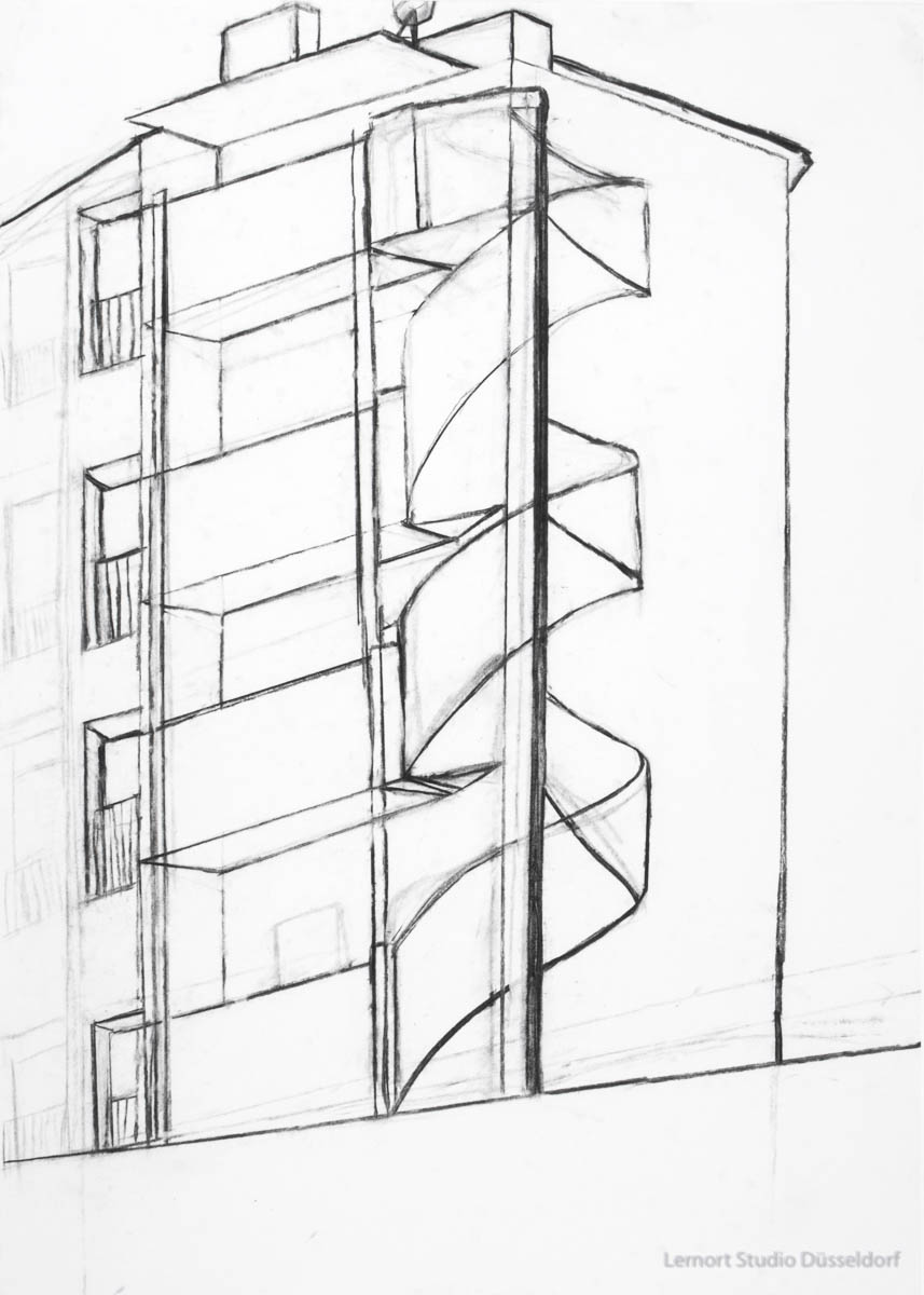 Vorheriges Bild Nächstes Bild IIV_Nr.4 Beatriz Algayer (Marie Curie Gymnasium / Q1) „Architektur-Studien 3“ / Freies Zeichnen